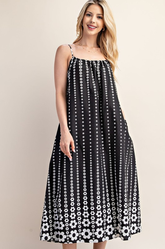 - Vestido maxi con estampado de flores de menor a mayor.