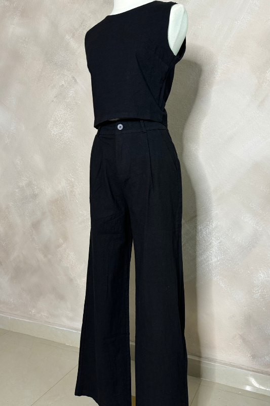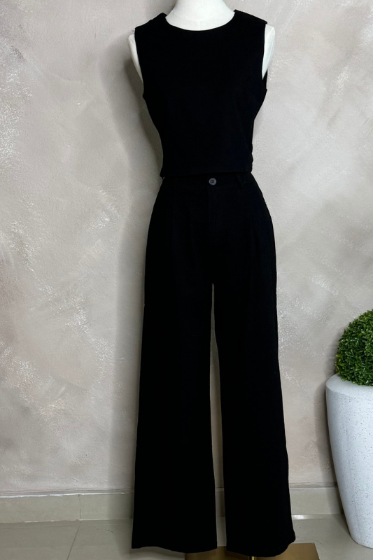 - Conjunto de pantalones negros Ágata es confeccionado en tejido hilo ligero y transpirable, este conjunto es perfecto para cualquier ocasión. Ya sea que lo combine con plataformas o tenis deportivas, seguramente hará una declaración y se sentirá elegante, cómoda al mismo tiempo. Este set es imprescindible tenerlo en tu closet. Sácale el máximo por la versatilidad al ser un conjunto.