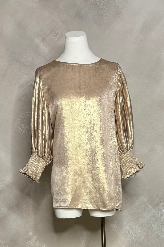 - Brilla y resplandece con nuestro top Bubble Gold. Con su elegante tejido dorado y sus mangas bellamente plisadas, este top es perfecto para cualquier ocasión. Y el cómodo cierre de botón añade un toque de encanto a la parte trasera. Di sí a la versatilidad con estilo.