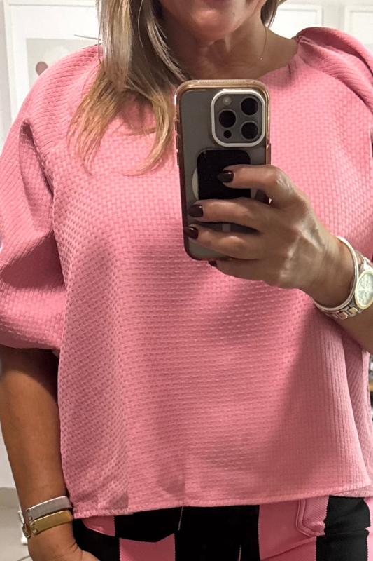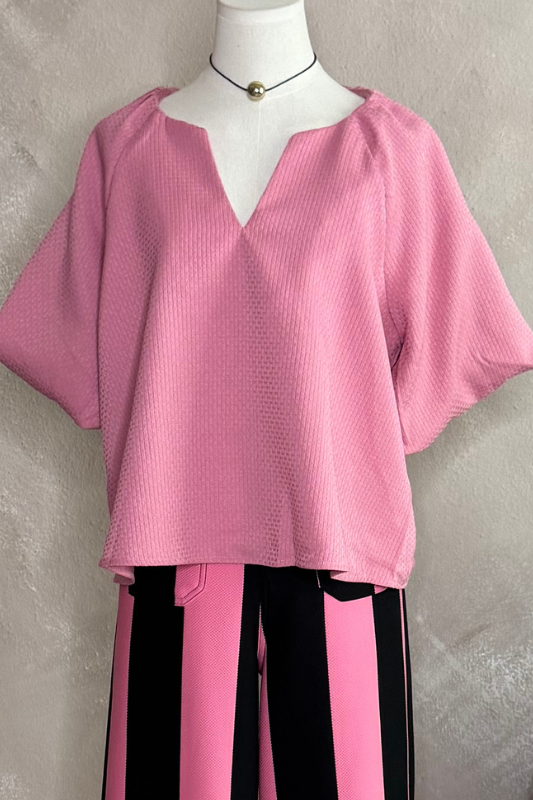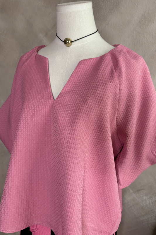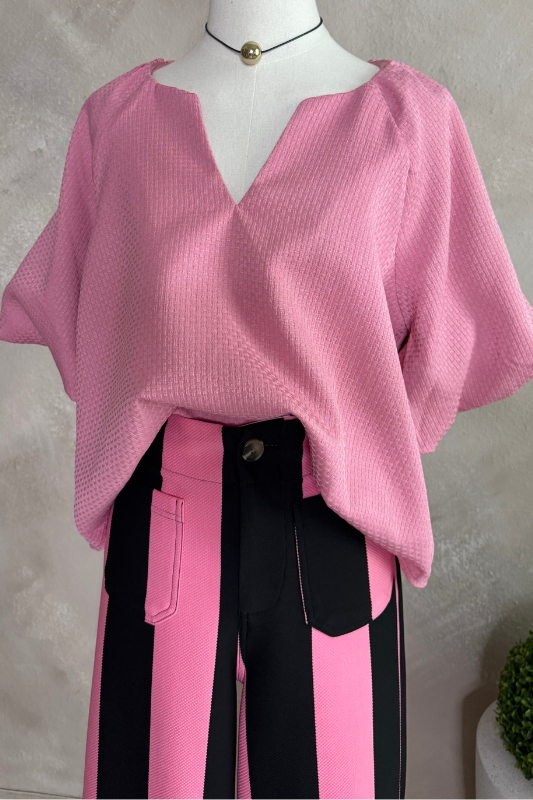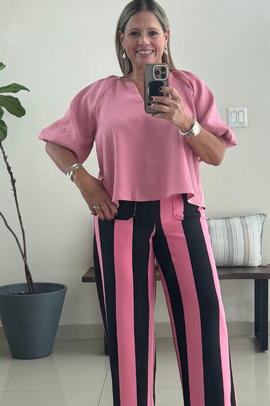 - Victoria es una blusa ideal para esa ocasión que quieres estar bien vestida, pero cómoda. Su tela tiene un diseño.