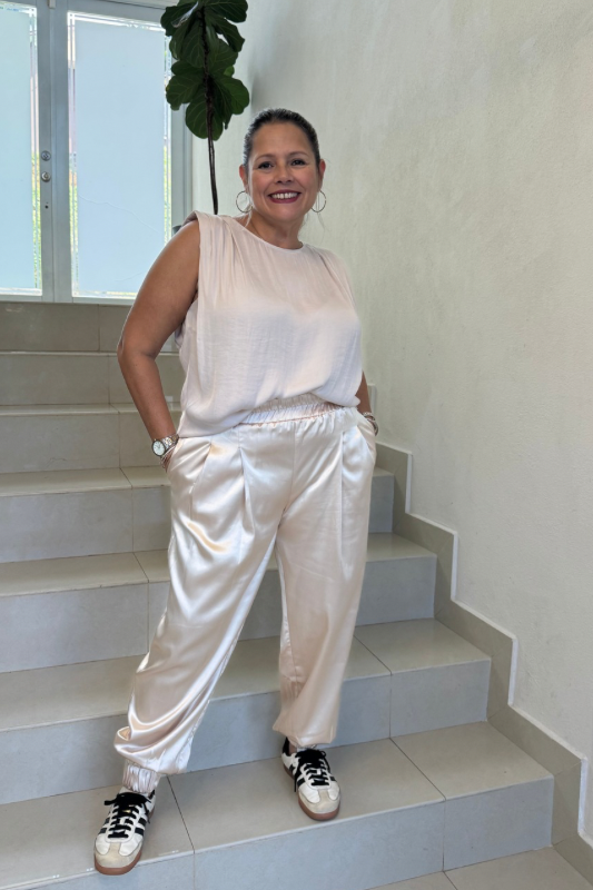 - Loren Top tiene una tela muy liviana y fresca, ideal para llevarla debajo de un blazer o cuando quieres sentirte cómoda y bien vestida.