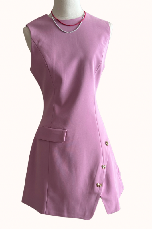 - Velvet dress es un traje diseñado para la mujer moderna que valora la elegancia con un toque de frescura. Su corte y su tono de rosa resalta la feminidad sin perder fuerza.