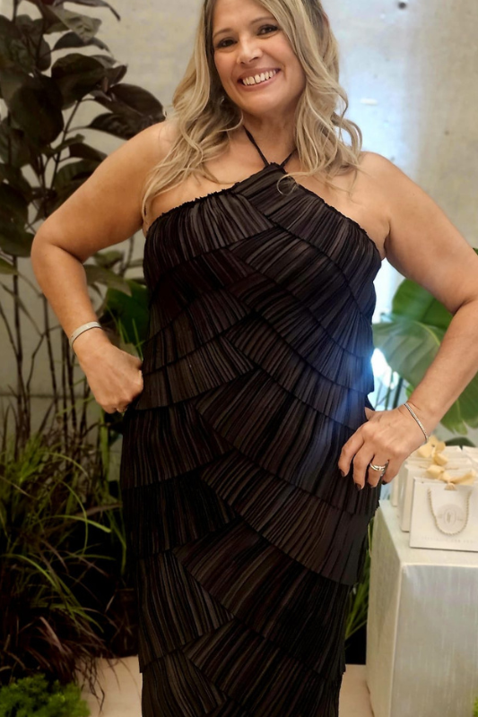 - Este vestido negro elegante es la elección perfecta para un cóctel o una ocasión muy especial. Su diseño sofisticado realza tu estilo con un toque de encanto.