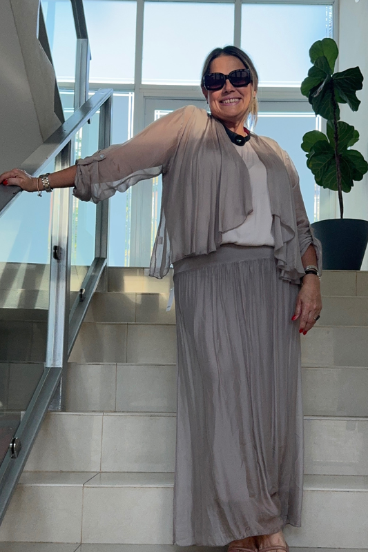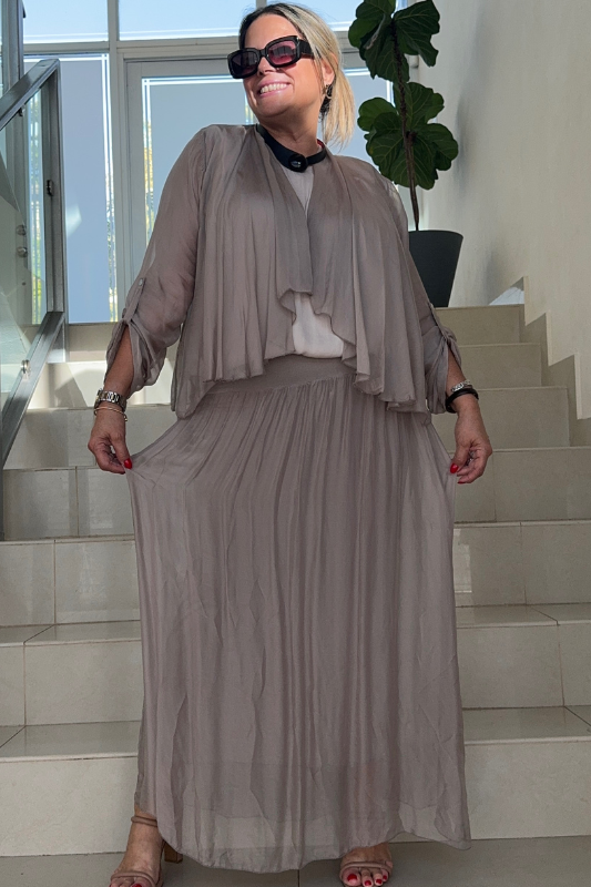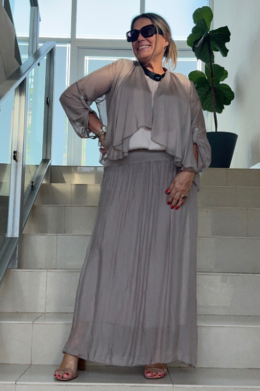 - Luce especial con nuestra" Rebecca Skirt" su tela de seda muy cómoda y elegante, su color neutral es perfecta para tu ocasión especial, tiene forro, su corte holgado añade un toque extra de comodidad.