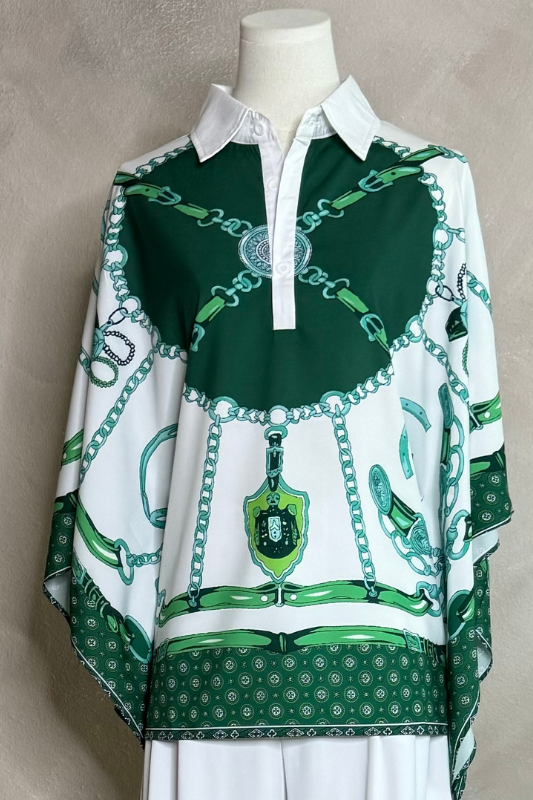 - Añade un poco de color a tu armario con nuestro Graciela Top. Esta hermosa camisa verde, blanca ofrece un estampado único y elegante que te hará destacar.