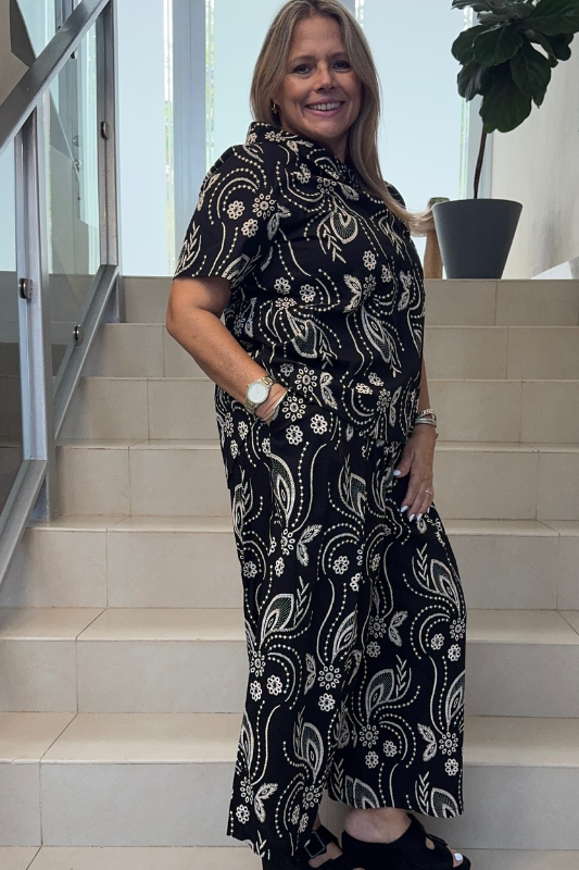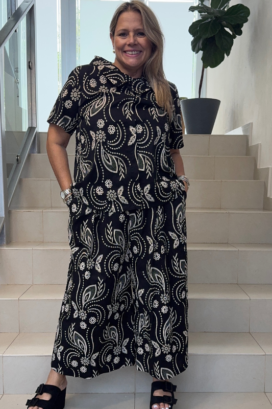 - Pashey Pants es un pantalón bordado estilo Palazzo.