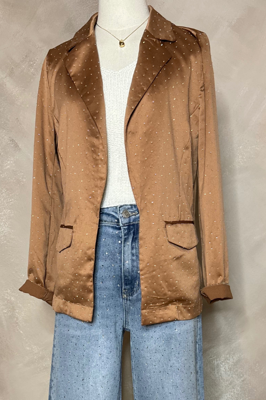 - Pasa de lo casual a lo elegante con nuestro blazer de satín. Este versátil blazer es perfecto para cualquier ocasión, estarás a la moda ya que es el color en tendencia 2025.