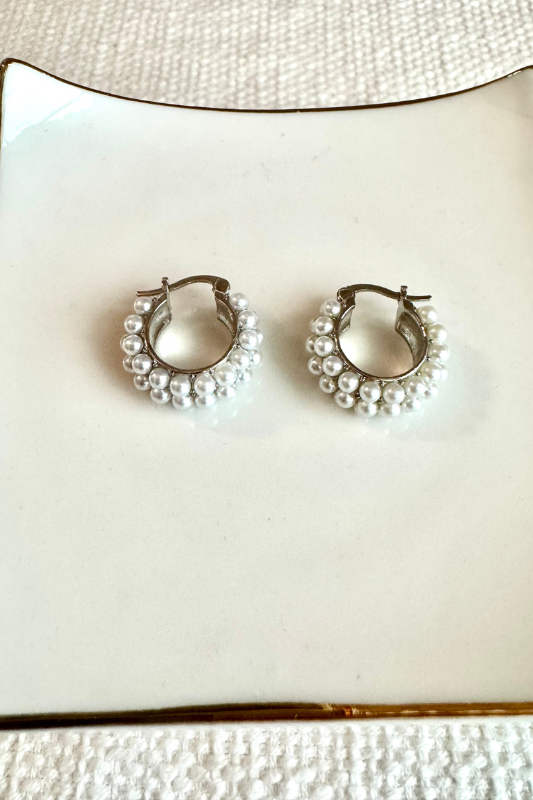 - Estas delicadas pantallas tipo huggie combinan la sofisticación de las perlas.