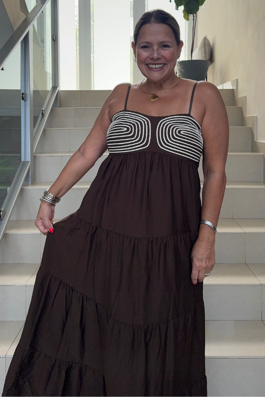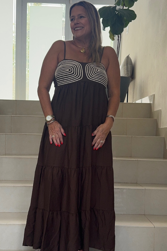 Descubre el Ébano Dress, un maxi vestido marrón que combina comodidad y estilo con un diseño único en la parte superior. Perfecto para cualquier ocasión, este vestido versátil te hará sentir hermosa y libre para moverte con confianza. ¡Ideal para tus días llenos de aventuras y momentos especiales!