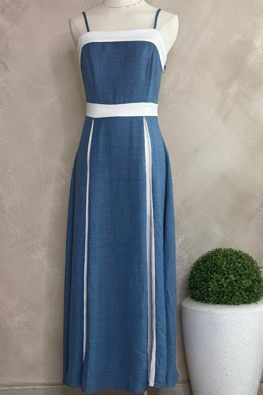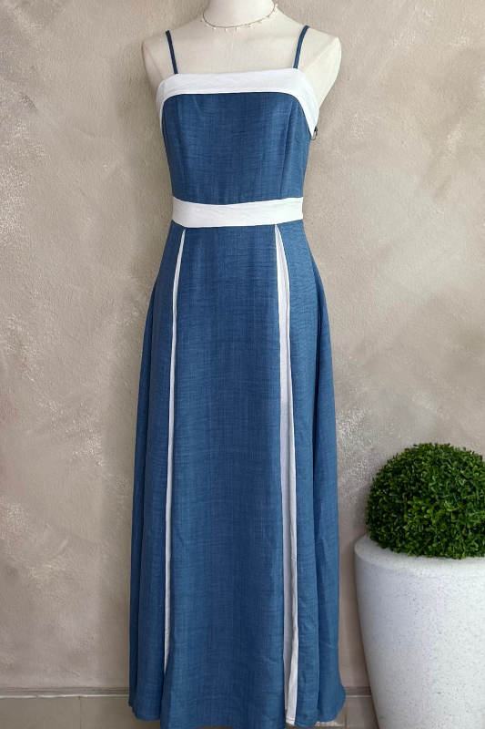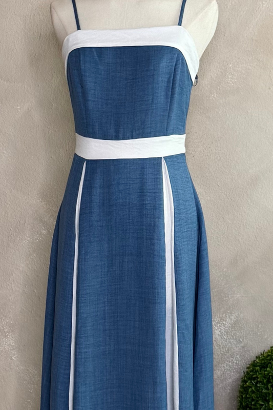 - Disfruta del verano con nuestro Costa Dress, su corte midi y colores azules, blanco combinan frescura y comodidad.
