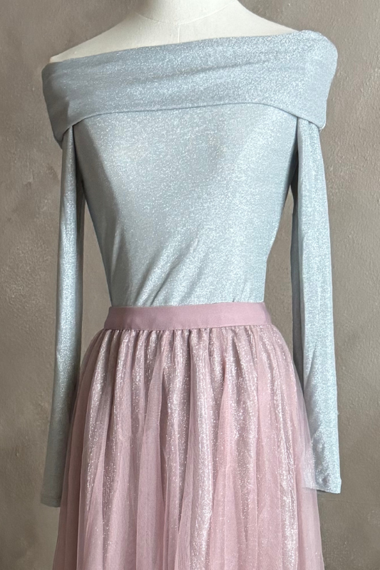 - Prepárate para brillar con el top Silver Serenity. Esta blusa plateada metalizada con hombros descubiertos es moderna y cómoda, lo que la convierte en la elección perfecta para cualquier ocasión, ya sea que estés buscando para una salida casual o más formal, simplemente ser elegante y chic.