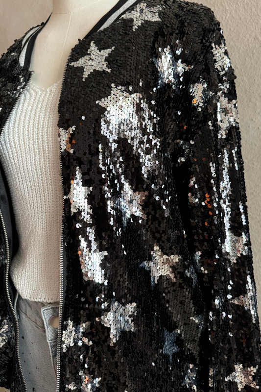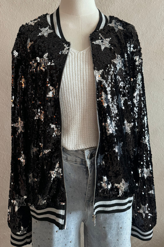 Esta impresionante chaqueta está adornada con estrellas brillantes, añadiendo un toque de glamour a cualquier atuendo. Mantente abrigado y con estilo con nuestra exclusiva chaqueta de estrella de brillo.