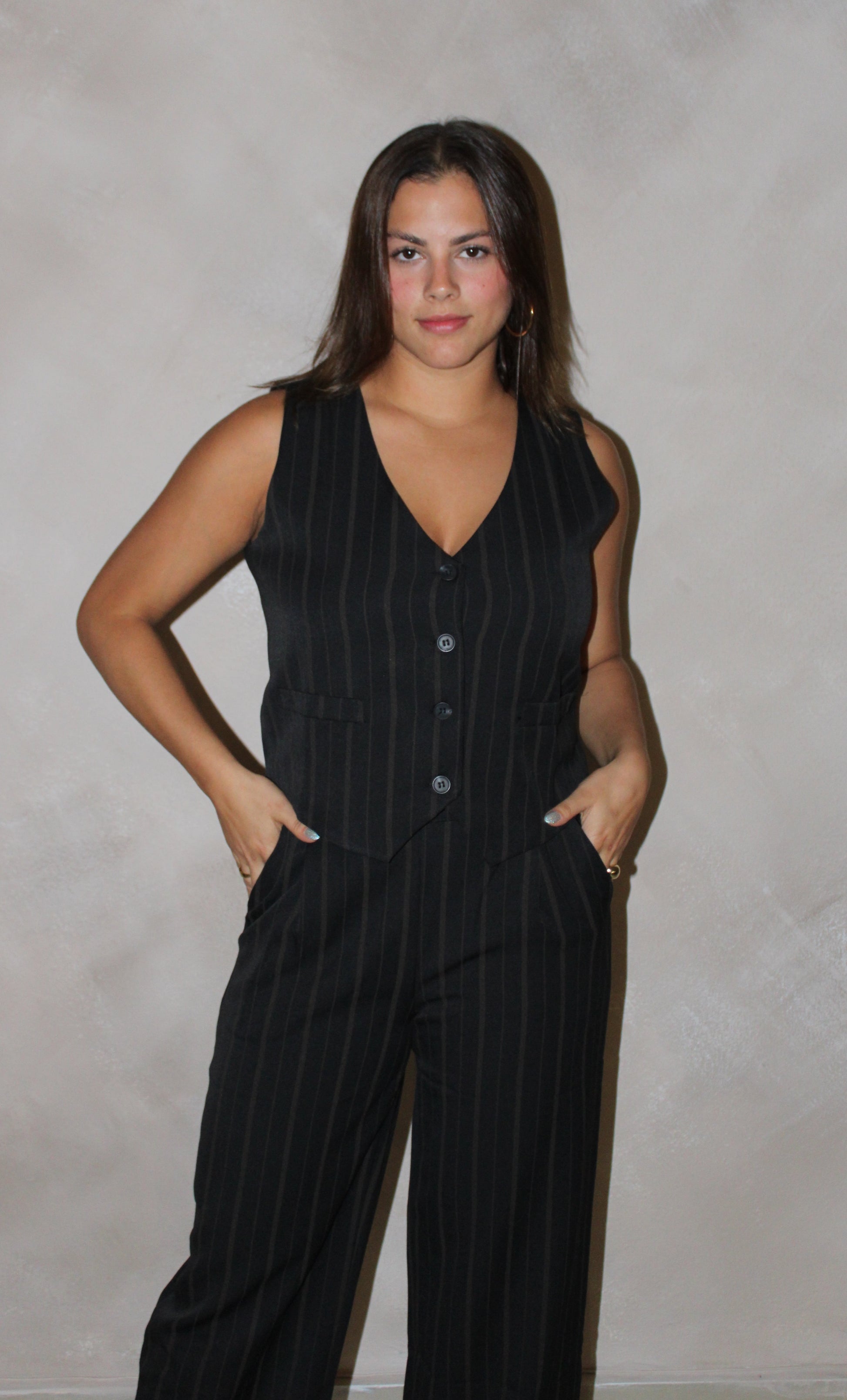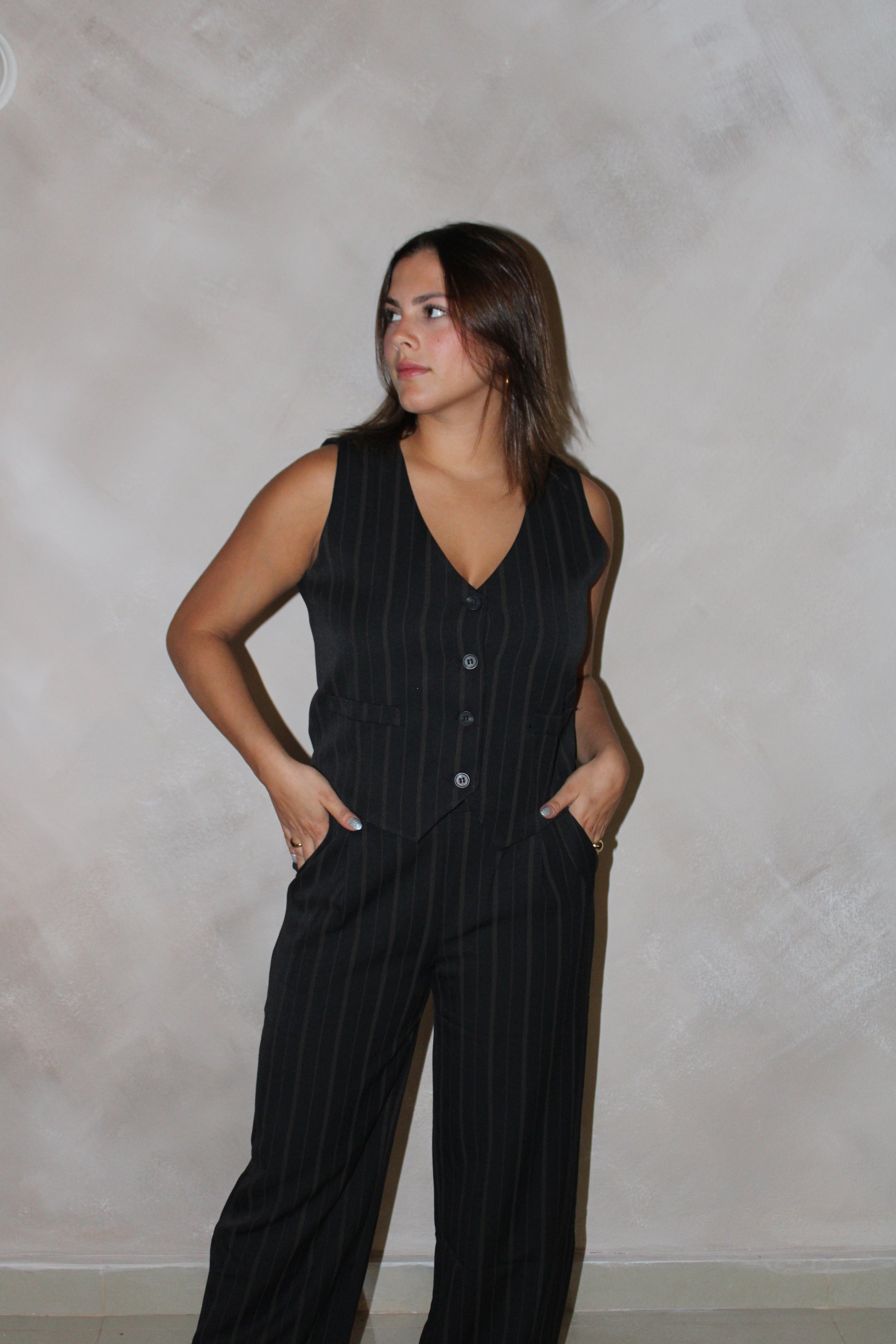 - Chaleco (vest) de traje a rayas con cuatro botones. Multiusos.