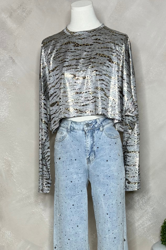 - Dale vida a tu guardarropa con nuestro top metálico salvaje. Con un moderno diseño metálico y de estampado animal, este top es perfecto para hacer una declaración audaz y elegante sin dejar de ser cómodo. Destaca entre los demás y añade un toque de elegancia a tu look.